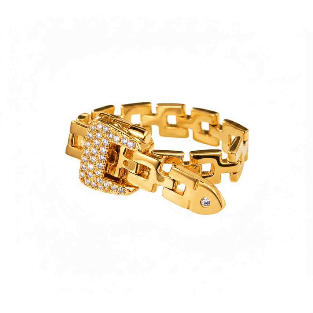 Підкресліть свою красу та витонченість каблучкою "Gold Belt"! Цей вишуканий аксесуар, виготовлений з позолоти, медсплаву та фіанітів, стане справжньою родзинкою вашого образу.