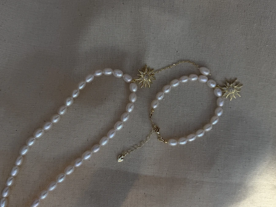 Вишукане кольє, яке поєднує преміум перли, елегантний медсплав із позолотою та блискучі фіаніти. Втілення ніжності та розкоші, що прикрасить ваш образ, додаючи сяйва та гармонії. Ідеальний вибір для тих, хто цінує стиль і якість.