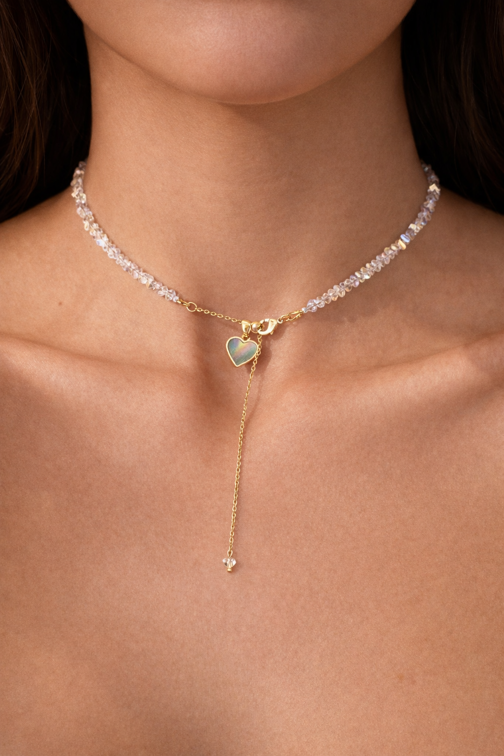 Кольє "Chrome Shine" — стильна комбінація ювелірного скла, перламутрової вставки та срібного покриття, що надає вишуканого блиску. Завдяки подовжувачу 8,5 см і зручній застібці-карабіну, легко регулюється для ідеальної посадки. Ідеальний вибір для тих, хто любить поєднання елегантності та сучасного стилю.