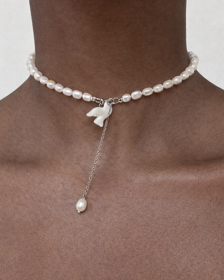 Це кольє стане чудовим подарунком для себе або для близької людини. Воно виготовлене з Високоякісних перлин, срібла та полімерної глини, це кольє поєднує в собі природну красу та майстерну роботу.