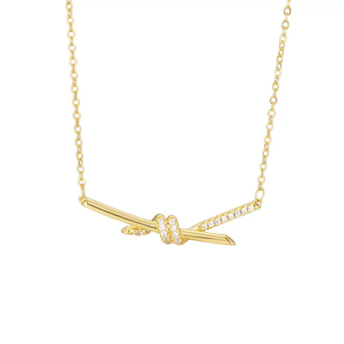 Кольє "Stick" у виконанні з позолоти - це чарівна та стильна прикраса, яка надасть вашому образу особливого блиску. Це кольє має унікальний дизайн у вигляді перехрещених палочок, які символізують гармонію і об'єднання.