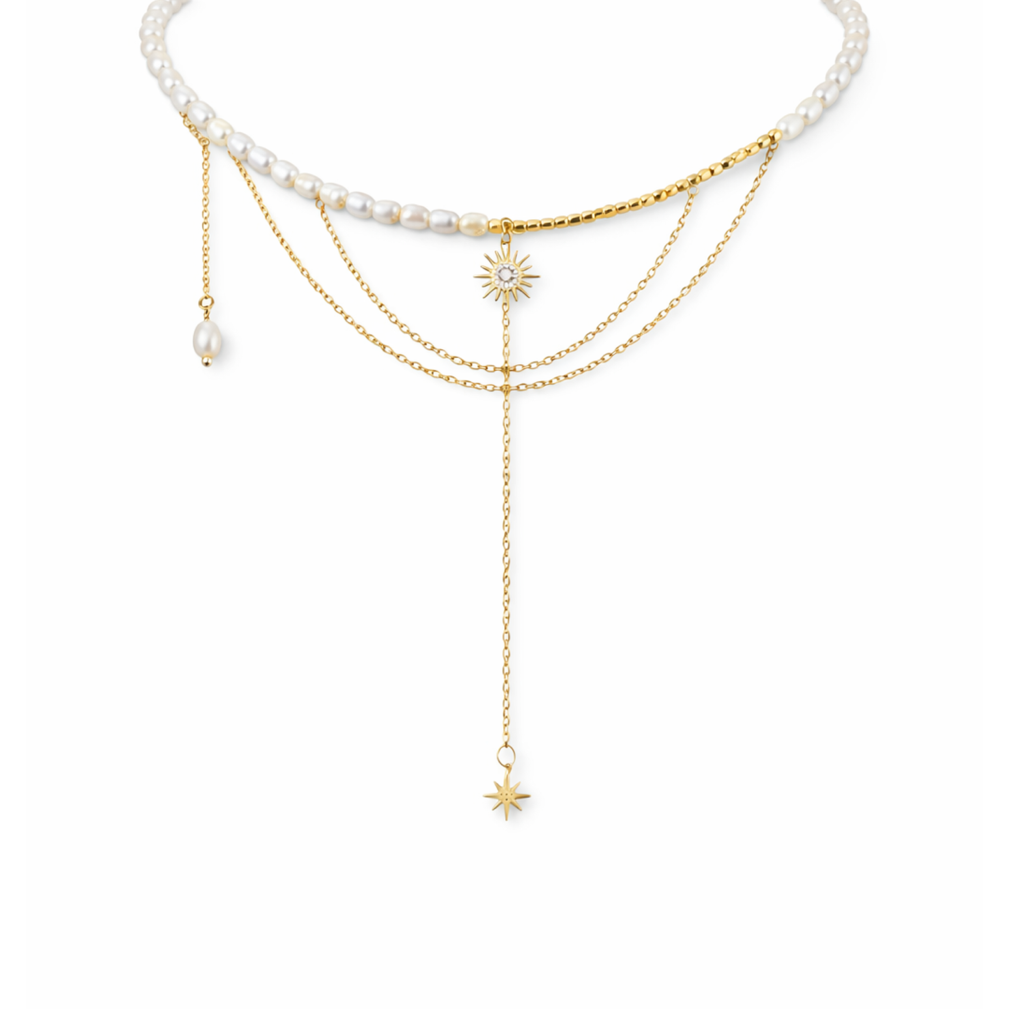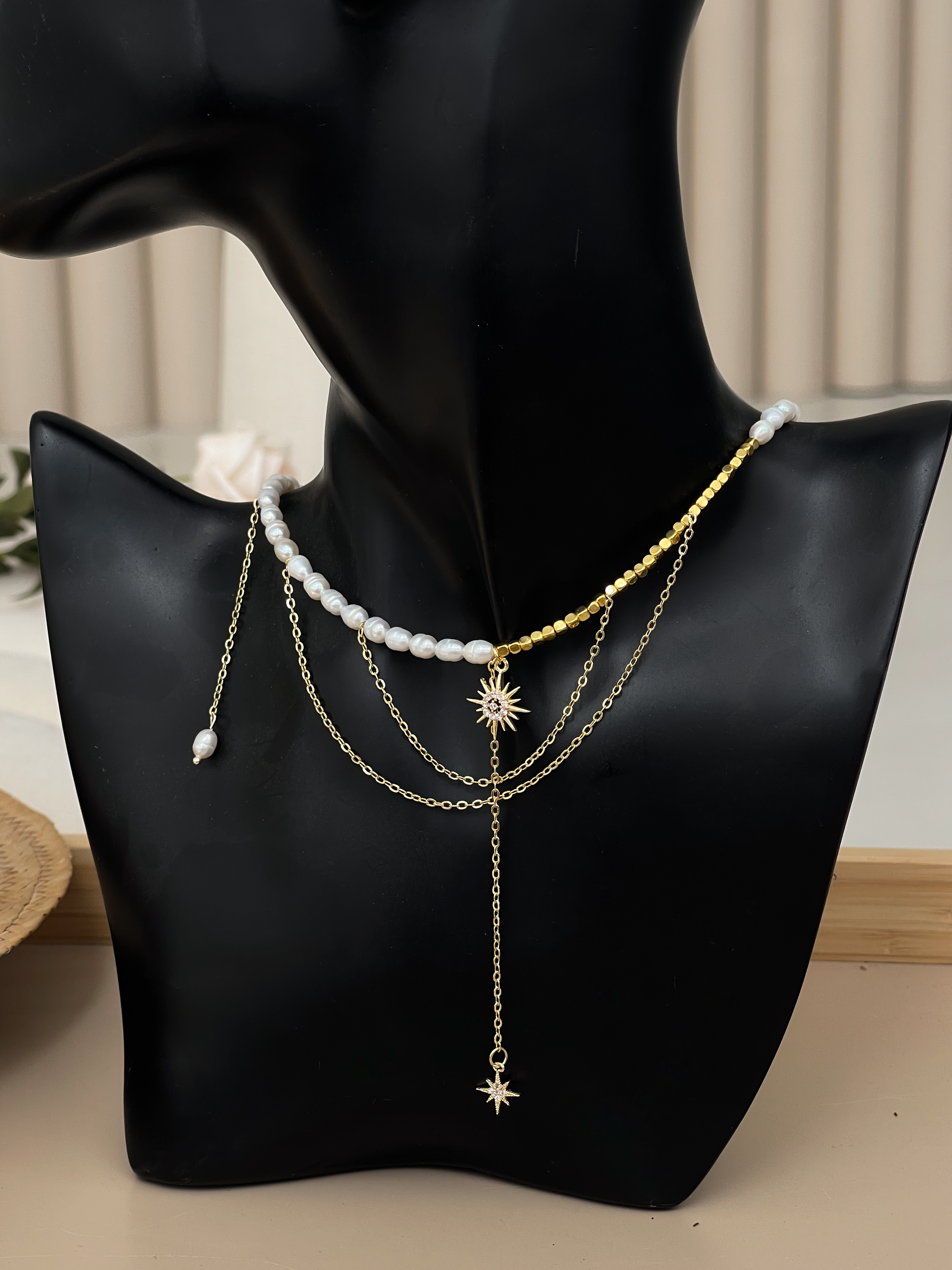 Кольє "Зіркові Перлини" - це вишукане поєднання класики та сучасності. Японський бісер, Високоякісні перли та фіаніт створюють ніжний мерехтливий ефект, а позолота додає благородства. Це прикраса, яка підкреслить вашу індивідуальність.