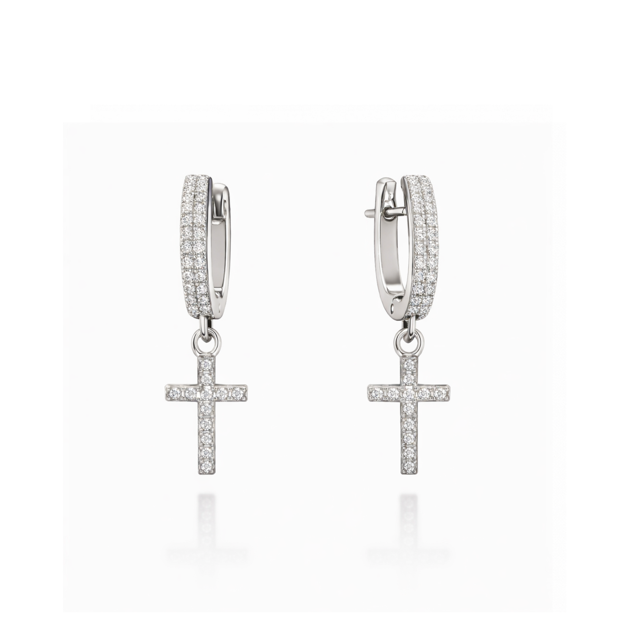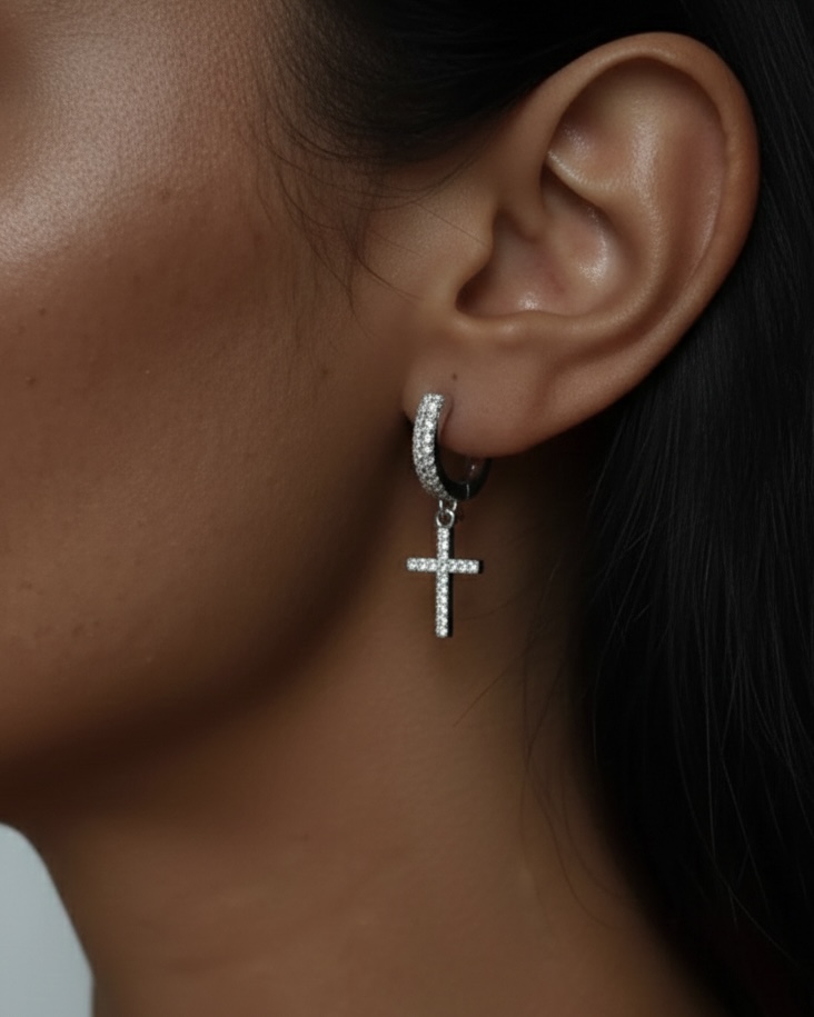 Сережки “Shine Amen” – це елегантна прикраса, що поєднує витонченість класики та сучасний блиск. Виготовлені з якісного медсплаву зі срібним покриттям, вони мають акуратну форму з підвісом-хрестиком, інкрустованим сяючими фіанітами.