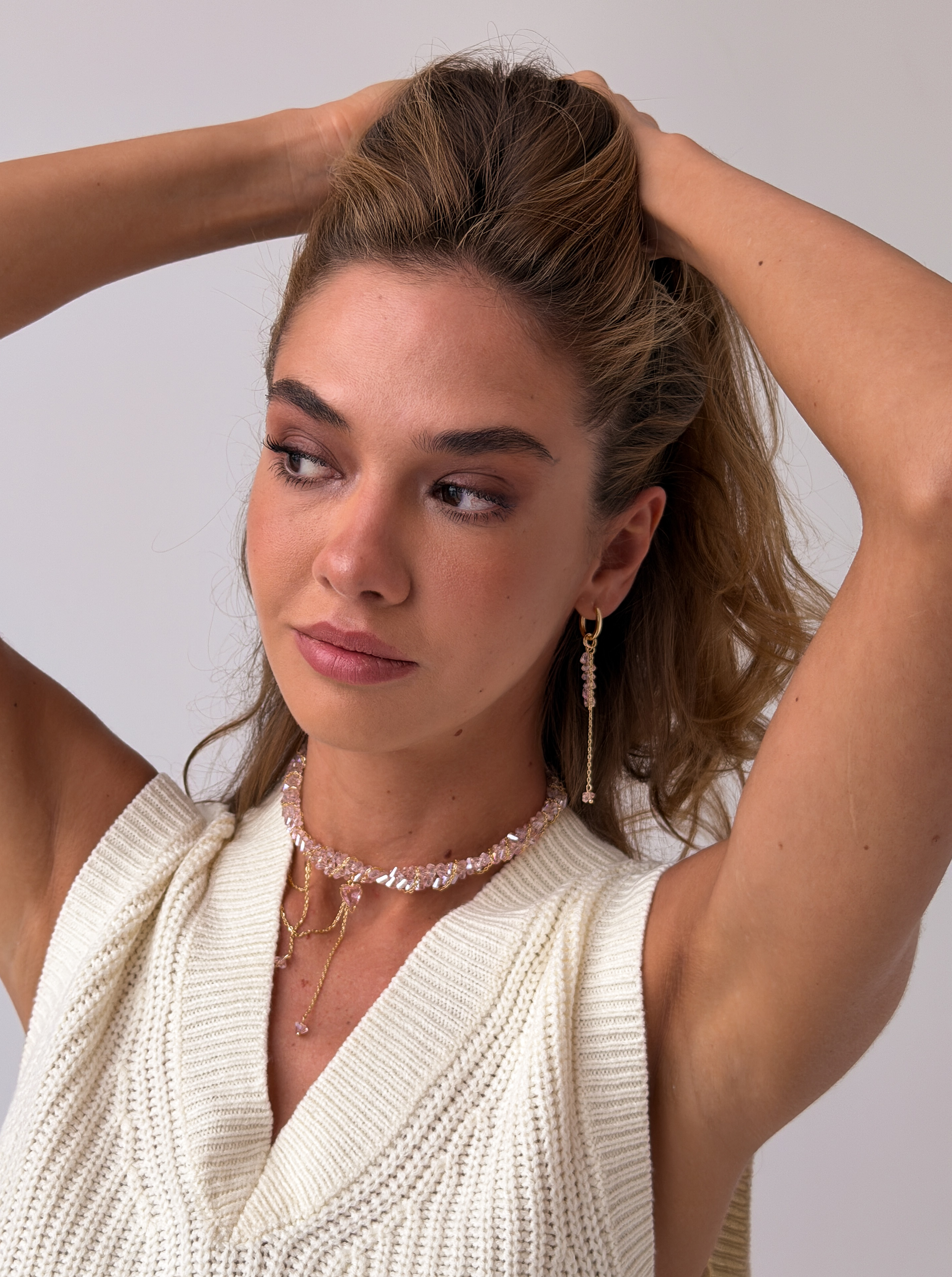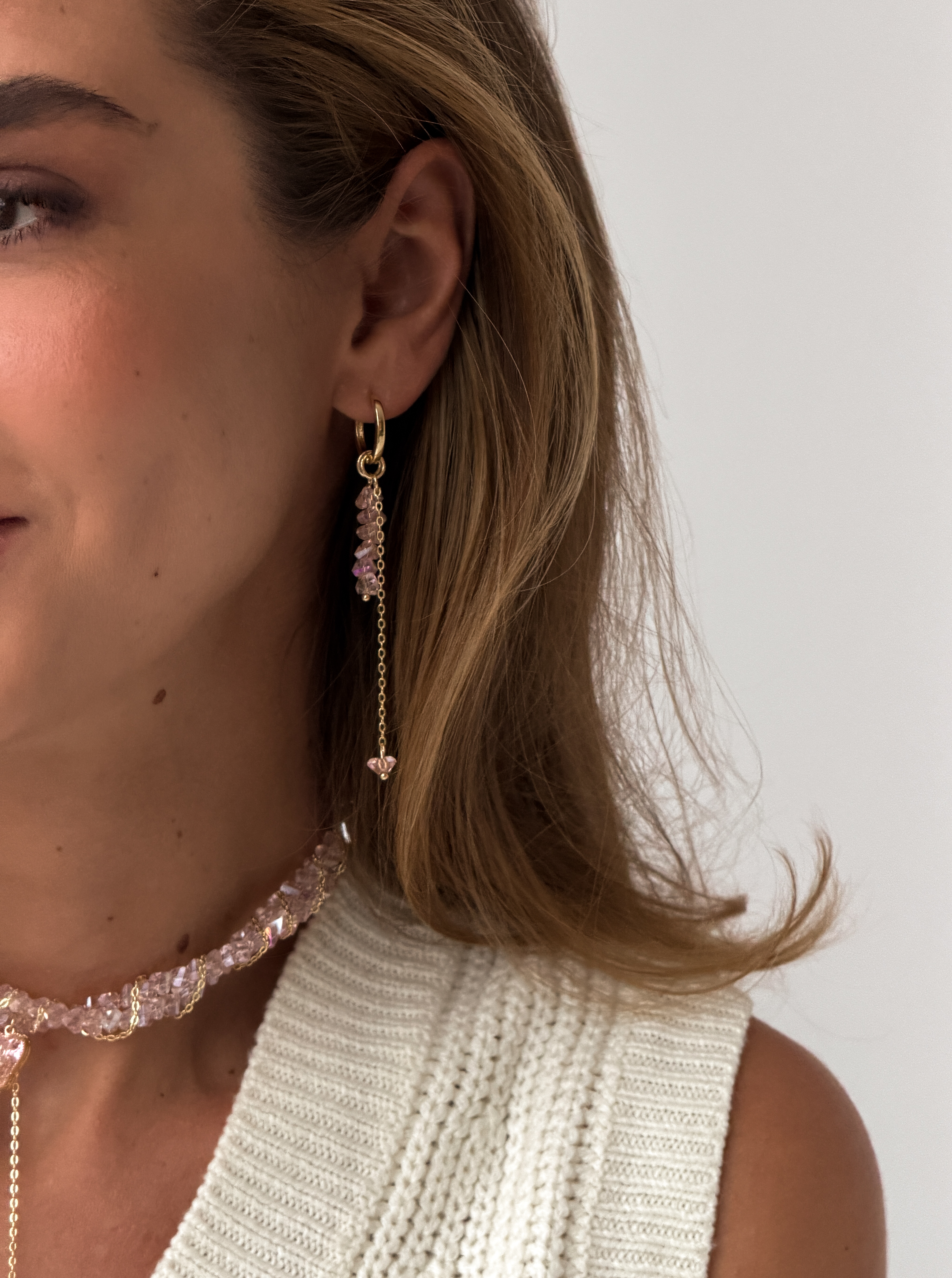 Сережки “Сяючий Пломбір” — це витончена та елегантна прикраса, яка гармонійно доповнить як повсякденний образ, так і більш святковий. Вони виготовлені з ювелірного скла, медсплаву, фіанітів та покриті стійкою позолотою. Застібка-кільце додає сережкам сучасності та зручності у носінні.